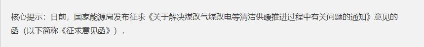 日前,國家能源局發(fā)布征求《關于解決“煤改氣”“煤改電”等清潔供暖推進過程中有關問題的通知》意見的函(以下簡稱“《征求意見函》”),引發(fā)業(yè)內(nèi)熱議。